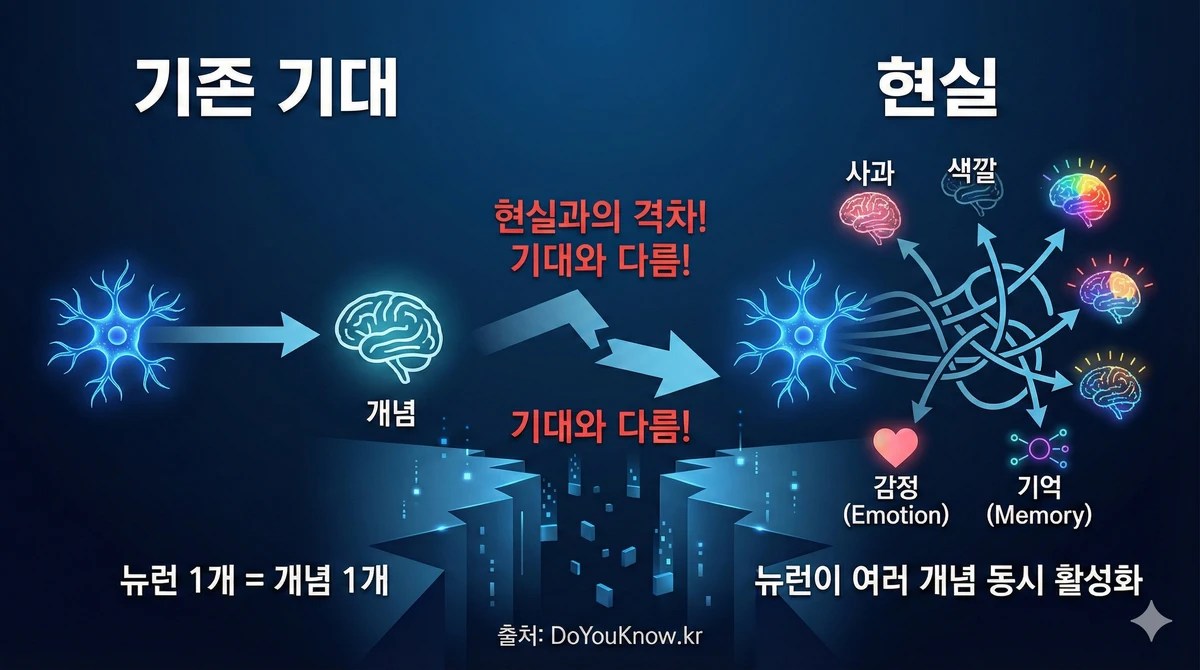 “단일 뉴런이 여러 개의 전혀 무관한 개념에 동시에 반응합니다. 예를 들어, 한 뉴런이 ‘강아지’, ‘금지 표지판’, ‘그리스 텍스트’에 동시에 활성화됩니다!”