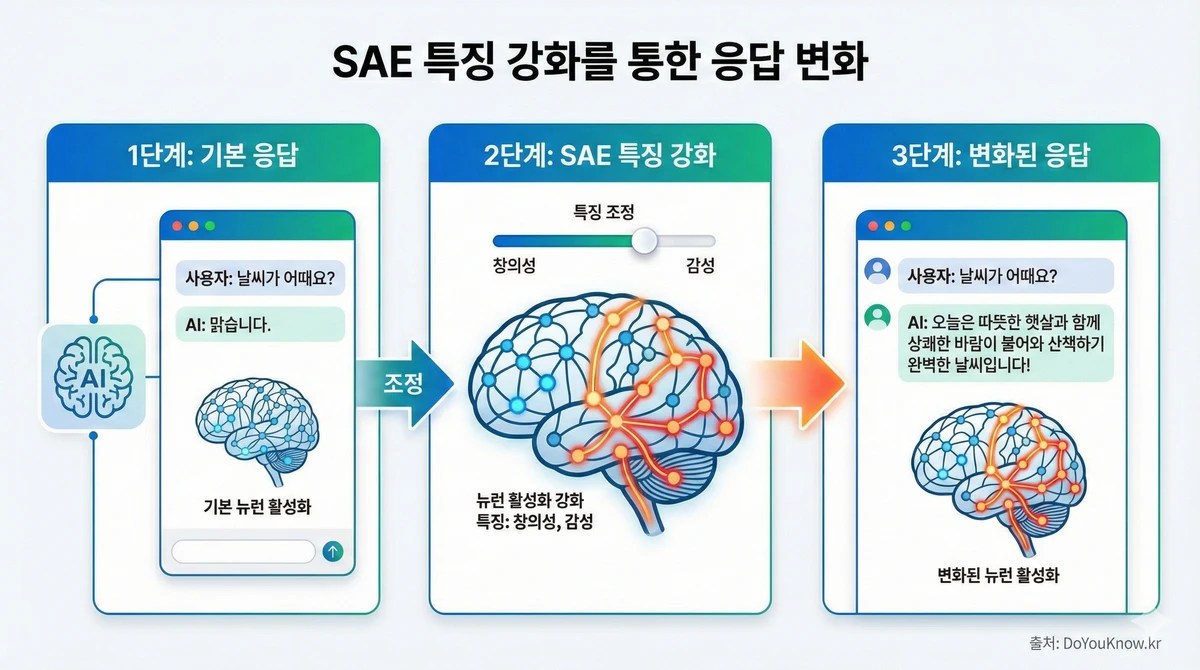 - 인과 개입: 특징 조종 → 행동 변화 확인