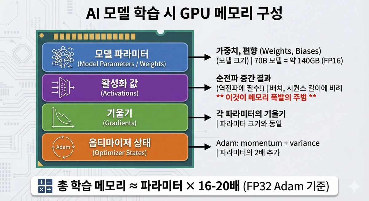 → 학습은 추론의 10-20배 메모리가 필요합니다!